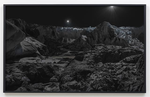 Hostile to living beings, the earth’s poles and glaciers are today considered fragile ecosystems that must be protected. Julian Charrière created a screening under the same title, surrounded by an installation, turning the whole exhibition space into an immersive experience (at the Masi de Lugano in 2019, then at the Argauer Kunsthaus in 2020). The very hypnotic film plunges us into nocturnal images bathed in the light emitted by drones, seamlessly passing from the North Pole to other mountain ranges.